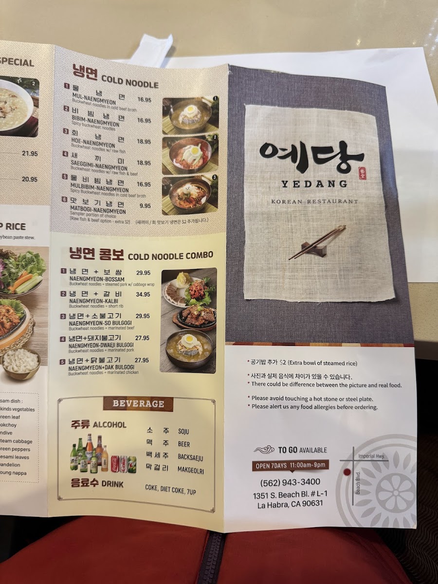 Yedang Korean Restaurant is a full-service dining spot in La Habra that leans heavily into traditional Korean homestyle cooking. It draws a steady crowd of Korean locals, which often means busy weekends and a lively dining room with a welcoming, communal atmosphere. The restaurant’s set-up accommodates both small groups and larger parties comfortably, with clean, spacious seating that works well for family meals or casual get-togethers.